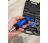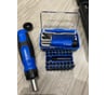 Давно думал взять себе реверсивную отвертку, надоела эта россыпь разноколиберного старья ), хотя есть и трещетка на 1/4 и бош go, но это всё же другое. Изучил кучу подобных под свои хотелки, выбирал между этой, штурмовскими и крафтулом. У темно зелёной мелкая и пузатая ручка, и ценник почти х2, у светло зелёный смешной мешочек для хранения, да и бит меньше. 38й набор идёт с отвёрткой без отсека для хранения бит ( как 37й), но с длинными битами и головками, для меня это оказалось важнее. Кейс прям очень достойный, крепкий и толстый пластик. Конечно, если его хранить в мешке с другим инструментом и постоянно так таскать, то лоск быстро сойдёт. Фиксация бит и головок шикарная и держится все крепко и доставать очень удобно. Теперь к самой отвертке, все что чёрное это резина, все синее пластик, на мой взгляд хват как у 90% любых отверток, но держать приятно. Вес пустой тушки 130г., т.е. отвертка больше тяжелая, чем лёгкая. Трещетка на 72 зуба, без критичных люфтов, там всё пока хорошо. Переключение четкое, при работе трещит немного шумнее трещёток которыми я пользуюсь. Так же при изучении маркировки нашёл интересную для себя штуку, читаем изготовителя и видим уже упомянутый мной выше крафтул ). По итогу впечатление действительно качественной и удобной вещи, реально приятно удивлен.