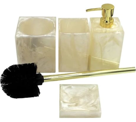 Дозатор для мыла пришёл с другой фурнитурой. Узор на всем комплекте смотрится отвратительно, как размокшее мыло или мыльные разводы. Сами предметы очень хрупкие, в первый же день разбилась крышка с кожаной петелькой. Если бы не разбилась - оформила бы возврат.