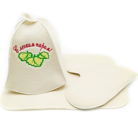 1.шапка,руковица,пожопнник, 2.проушины для подвешивания, 3.сукно белое, 4.нашивка "ГЕРОЙ И ЗАЩИТНИК, 5.СПАСЕТ ОТ ГОРЯЧИХ ПРЕДМЕТОВ В САУНЕ,БАНЕ,ХАМАМ, 6.3 ШТ. В 1 КОМПЛЕКТЕ.