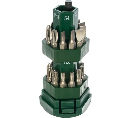 Отличный кейс-отвертка (магнитный, интегрированный в корпус, держатель находится под зеленым наконечником), высокое качество бит, почти полный ассортимент на все случаи жизни. В середину вместе с держателем помещается несколько тонких свёрел.