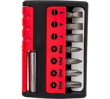 Цена, футляр, компактность, биты среднего качества, не пластиновые, магнит в держателе хорошо удерживает биту, не кривой, саморезы не примагничеваются к бите, в футляр можно установить держатель с битой и можно использовать как отвёртку с приложением небольших усилий, футляр пластиковый всё-таки и может сломаться. Реальные размеры видны на фото.