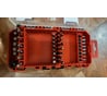 Удобный органайзер для бит с оригинальным конструктивом. Не открываемый кругляш размером с половину ладони на 21 сектор для бит и прорезью в крышке. Крышка несъемная, вращается шагом по или против часовой стрелки и за шаг открывает прорезь в один сектор. 14 секторов заняты битами, 7 пустые, можно положить свои. На черные сектора нанесена белая маркировка типа биты. В крышке ложе с неодимовым магнитом для держателя бит. В днище тоже магнит. Выглядит и ощущается как добротная крепкая вещь. Полчаса крутил, вертел, доставал и раскладывал биты, снимал и вставлял держатель, пока внезапно не выскочил плохо прикленный к пластику магнит. Пришлось доставать эпоксидку, зачищать и клеить заново.