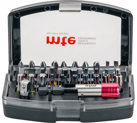 Набор полноценный, есть все необходимые биты и при этом коробка компактная и с клипсой. Качественный битодержатель, бита немного подпружинена.Биты идеально встают шлицами в винты. Эта фирма производит инструменты для Wurth. У меня несколько наборов Mte. Получаешь удовольствие от использования.