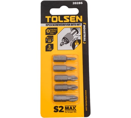 Отзыв Набор бит дюймовых Industrial S 9/64-1/4", 1/4", 25 мм, S2, 5 шт TOLSEN 20290