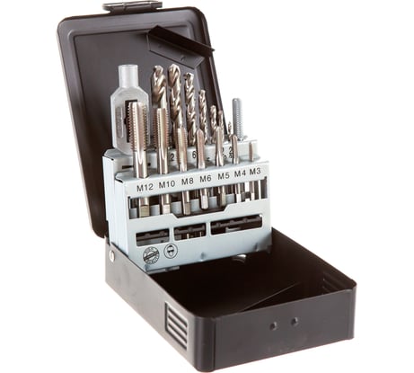 - Все ходовые метчики в одном кейсе - Свёрла под метчики в комплекте - Удобный, надёжный кейс - Метчикодержатель в комплекте