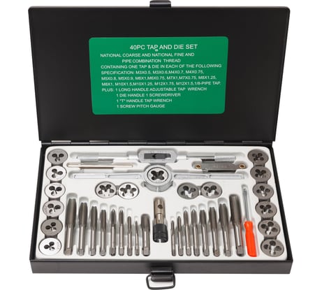 Хорошая комплектация основных резьб, метчик 3-х номеров для нарезки качественной резьбы.