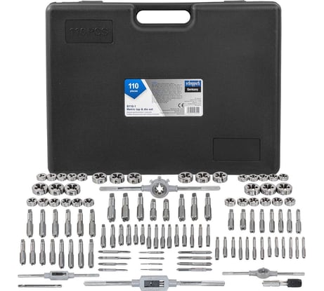 Практичный и полный набор для нарезки резьбы. Всё аккуратно уложено, ничего не болтается. Метчики и плашки из качественной стали — режут чисто, не заминаются. Подходит и для гаража, и для серьёзной работы. Удобные держатели в комплекте. За свои деньги — отличное соотношение цены и качества. Рекомендую.