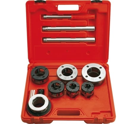 Отличный резьбонарезной набор для работы. Головки легко меняются. Режет чисто, легко удалить стружку, удобный. Прочный чемодан.