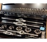 Если стоит задача выбрать топчик, то и выбирать особо не с чего. Остановился на VOELKEL V49251. О самой фирме отзывы как-то противоречивы, но они такие по не дорогим наборам. Данный набор и в количестве достаточный и в характеристиках очень - сталь HSSE с прочностностным пределом до 1200MPa. Цены в более чем 140тр набор не стоит. А вот по скидке за 59тр вполне. На родном сайте в Германии этот набор стоит 772€, что если перевести в рубли вполне выгодная покупка. Сам набор вполне избыточный для домашнего использования. Осмотрел все метчики и плашки, все идеально. Все подписано, маркировано и везде надпись Germany. А вот сам футляр огорчил. Ручка не внятная из металлической пластины в дешевом пластике, замки перекошены, причем перекошены в одну сторону. И это все при солидном весе набора почти под 10кг. Набор раскладывается ярусно. Панель с плашками можно просто вынуть. Воротки тоже могли бы сделать по лучше. Если метчикодержатели вполне на высоте, то плашкодержатели выглядят как-то не очень, дешево. Мне кажется, что в дорогих наборах все составляющие должны быть на высоте. Ставлю максимальную оценку, поскольку недочеты которые указал явно не скажуться на качестве работ.