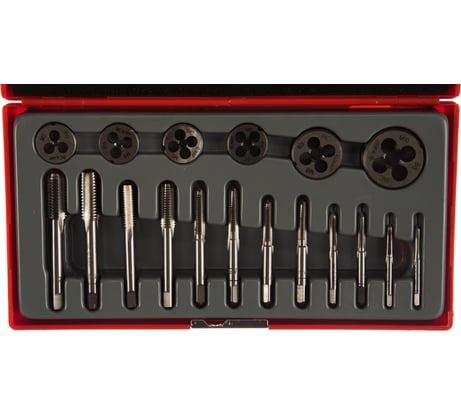 Действительно максимально необходимая комплектация метчиков и плашек. Нет нестандартных размеров которые вам никогда не понадобятся. Трехэтапные метчики - это вообще конфетка: черновой(№1) -> чистовой(№2) -> финишный(№3).