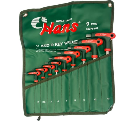 Однозначно это лучший набор шестигранников. Самый полный размерный ряд. Шестигранники изготовлены из легированной стали S2 – это специальная комплексно-легированная сталь с повышенным содержанием углерода, которую относят к группе инструментальных сталей. Легирующие элементы образуют сложные комбинации в структуре стали, придающие ей одновременно повышенную твердость и ударную вязкость металла, способствуют уменьшению содержания в стали нежелательных примесей, улучшают ее механические и коррозионные свойства. Т.е грани не будут сбиваться, даже при соскальзывании ключа. Отдельного внимания достоин кейс – очень прочный и компактный, приятный на ощупь. Я считаю, что многие недооценивают марку Hans. По качеству не уступает именитым King Tony и Jonnesway, и не переплачиваешь за бренд.