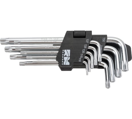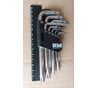 Приемлемая цена за такой набор из 9 шестигранников Torx 145р. Достаточно качественно выглядит антикоррозийное покрытие. Шлицы и грани выполнены достаточно качественно, точно в размер и без заусенец, наплывов и других дефектов. Наличие пластикового держателя. С одной стороны нет внутреннего отвертия, а с короткой стороны есть. Достаточно прочный металл, открутил 15 прикипевших из них несколько частично ржавых болтов и при этом шлицы не пострадали.