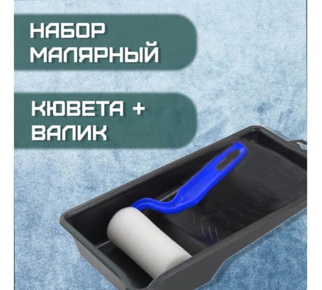 Хорошая идея продавать инструменты сразу набором, точно ничего не забудешь купить. Валик небольшой, но удобный, шубка из поролона, плотная, наносит краску ровным слоем. Кювета подходит по размеру к валику, сделана из хорошего пластика