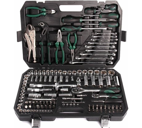 Довольно практичный набор головок и насадок. Нет всяких лишних предметов вроде уровней, рулеток и прочей ненужной фигни посредственного качества. Чемодан закрывается на 4 защёлки, две из которых пластиковые, а две металлические. Что даёт надежду на долговечность.