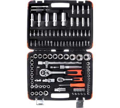 Классный рельефный кейс приятный на ощупь, железные замки кейса, выглядит все очень долговечно, честно думал металл не такой прочный, но благодаря данному набору промыл форсунки на 3-х машинах за один вечер, закисшие болты топливной рампы срывает на ура, там где 1/4 трещотки слабые, а 1/2 не подлезть, то трещотка 3/8 с удлинителем то что нужно.