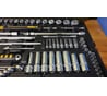 В целом набор понравился, на прочность ещё не проверял. Недостатки указал. Замки удобные, один правда сам отщелкивался, но немного подогнув, исправил проблему. Все головки промерил, как и положено размер в плюсе на 1,5-2 десятки, на одной головке на 3 десятки. На одном удленнителе незначительно заедает система съёма головки. В планах хочу заказать инфорсовский набор удлиненных ударных головок, поэтому не стал брать набор чисто с одними головками, также докупил набор удлиненных головок на 1/4 и набор ешек на 1/4 и 3/8. А так конечно ешек мало, даже той же E10 нет. В общем комплектация это чисто индивидуально, каждый сам должен подбирать под свои нужды. Кстати риски на головках работают, пробовал откручивать пластиковую гайку на радиаторе, на ней остались следы от них, они как бы вгрызаются в шестигранник.
