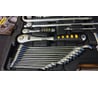 Компактный металлический кейс (25×13см); Хорошее качество изготовления трещотки и оснастки (торцевые головки от 4 до 13мм, удлинители, кардан, вороток) из CrV