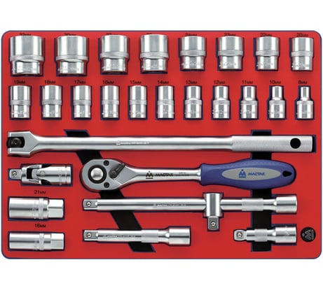 Отличная комплектация, есть ключи на 16,18,21. Рожковые ключи держат очень хорошо, ими реально можно закручивать и откручивать с хорошим усилием. В условиях автосервиса пока показывает себя очень хорошо.