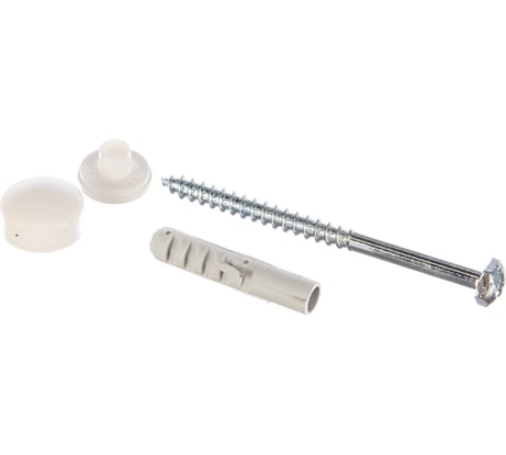 В комплекте имеется все необходимое, 2 дюбеля 10 мм., 2 шпильки 8 мм., 2 пластиковых втулки, 2 шайбы и 2 гайки.