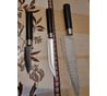 Как всегда великолепное исполнение от Самуры! По заявлению производителя японская сталь AUS-8, что более чем приемлемо для кухонного ножа. Все безупречно. Заточен в бритву!