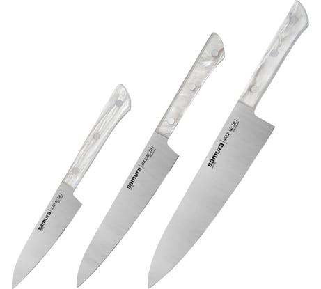 Как всегда великолепное исполнение от Самуры! По заявлению производителя японская сталь AUS-8, что более чем приемлемо для кухонного ножа. Все безупречно. Заточен в бритву!