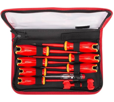 Хороший набор отвёрток, включающий в себя и шлиц PZ/FL, из лишнего только ключи, ибо у любого нормального электрика всегда с собой связка) Из минусов - кофр, пожадничали на ткани и запилили прозрачную вставку, думаю, она быстро порвётся.