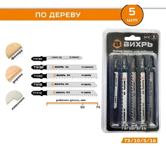 Полотно по дереву 5 шт для электролобзика vertextools T119BO