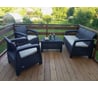 Второй сезон радует глаз на террасе. Особенно приятно завтракать за ним летним утром. Конструкция надежная, выдерживает частые застолья. Водоотталкивающая ткань на подушках - отличное решение.