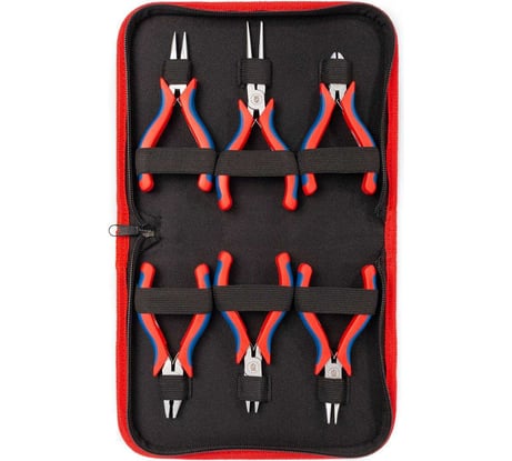 Киповский набор для всяких там миниатюрных работ. В основном покупался для работы с автоматикой, приборами и сборкой электрошкафов. Шесть кукольных ШГИ - головка пассатижей помещается на подушечку пальца, а утконосов - на два. Разве это плохо, когда нужно выломать пару ламелей в кабельном коробе или подключить реле в неудобном месте или переставить джамперы в приборе? Нет, конечно! Очень удобно. Свою задачу отработали не раз. Обратите внимание! Они не VDE и лезть в действующие электроустановки нельзя. Только в обесточеные.