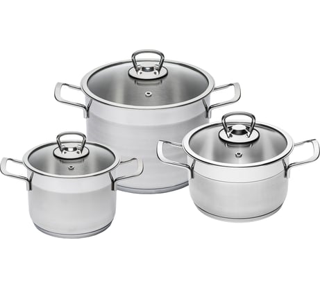 Отзыв Набор КАТЮША София нержавеющая сталь, 6 предметов кастрюли 1.4, 2.1, 3.2 л, стеклянная крышка 9901-901-0