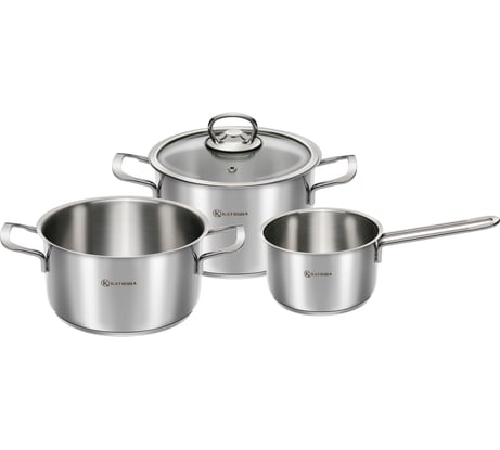 Отзыв Набор КАТЮША Марта нержавеющая сталь, 4 предмета кастрюли 2,3 л, 3,3 л, стеклянная крышка 18 см, ковш 1 л 140-04-0