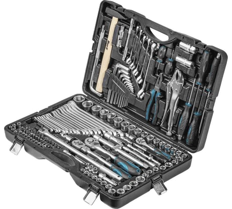 Достоинства: компактный размер, идеально входит под сидение авто. Наличие большого количества насадок на ответку и головок на трещетку. По сути все необходимое в маленьком чемоданчике Недостатки: нет рожковых ключей