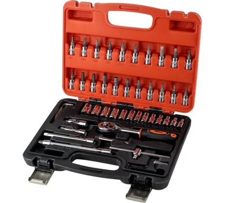 Кейс ..... Тяжело вытащить предметы и поставить на место (..... одним словом). Сам набор как недостаток. Купил домой, чтобы иногда что нибудь закрутить или открутить. Нужно было открутить и закрутить 4 болта 13мм с помощью кардана. С задачей справилась. В итоге головка застряла в кардане, еле выковырял. На прочность не пробовал. Жалею что не выбрал что нибудь подороже. Есть набор такой же комплектации Thorvik. Земля и небо. Цена так же отличается в 2,5 раза.