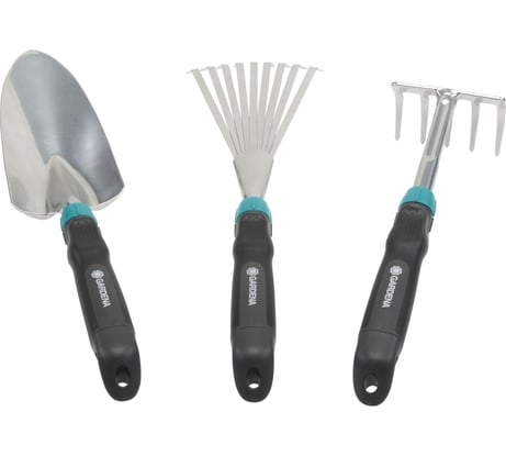 купили один набор сразу. По цене получилось выгоднее, чем брать отдельно. Все нужное, не ломается, прочное. Секатор отличный. На фото сравнение с лопаткой Гардена побольше.