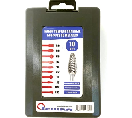 Отзыв о наборе бор-фрез Sekira твердосплавных (A10,C10,D10,E12,F12,G12,J10,L12,M12,N10) х 6 мм Х-образная насечка 00-00018050