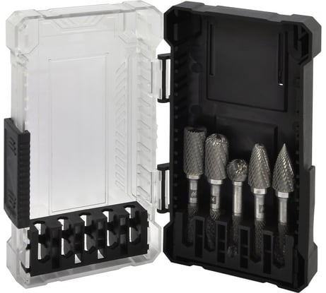 Отзыв Набор бор-фрез твердоспланых Thorvik TRRB060605-2S тип B, C, D, F, G, 6 мм, двойная насечка, в кейсе, 5 предметов 057041