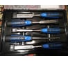 Первым делом заточил на водниках, ибо заводской заточки просто не было. Спинки с ямами, на широкие ушло много времени, но всё выправилось. Судя по характеру заточки и ощущениям от реза сталь соответствует заявленной. Брал как обычные столярные - резать от руки, но кромка начинает выкрашивается раньше, чем тупиться. Возможно, если переточить под 30-35 градусов и использовать как силовые (кольца на торцах намекают) всё будет нормально, но я с этим развлекаться не стал - забросил в дальний ящик. В итоге из бюджетных опять остался только Narex из обычной углеродки. P.S. Сравнивать есть с чем. Имеется железка для рубанка советских времён из такой же стали - до правки (не путать с заточкой) работает по два-три часа и никакого намёка на выкрашивание.