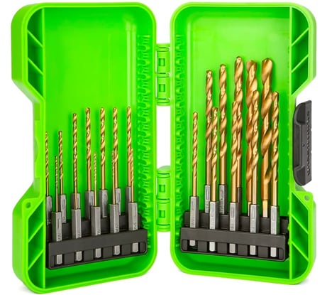 Отзыв Набор сверл HSS-TiN 1.5-8 мм, с шестигранным хвостовиком, в кейсе, 22 шт GreenWorks 2943907