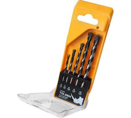 Отзыв Набор сверл по бетону DIN 8039/ISO 5468, 4-10 мм, 130°, цилиндр. хвостовик, TCT, 5 шт, пласт. пенал TOLSEN 75459