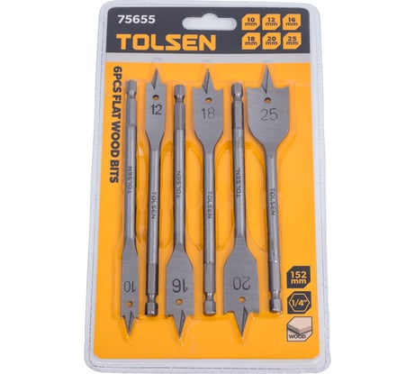 Отзыв Набор сверл по дереву перовых 10-25 мм, хвостовик HEX 1/4" TOLSEN 75655