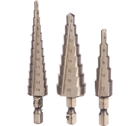 Данный набор ступенчатых сверл очень удобен для сверления тонколистовой стали (мойки, ящики, металлические коробки и т.п.). Подбираешь необходимый диаметр (где то на два размера больше и сверлишь до нужного диаметра. Что бы получить качественное отверстие необходимо следить за давлением на сверло и оборотами. Главное не перегревать сверло, можно при сверлении смазывать зону сверления любым маслом.