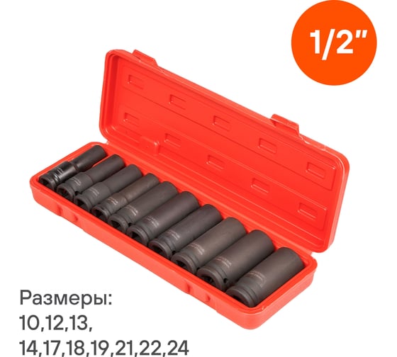 Набор ударных удлиненных головок 10-24 мм, 1/2", 10 шт. AV Steel AV-721410