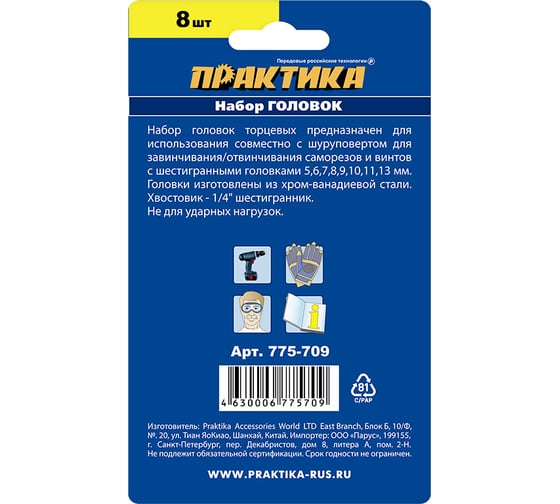 Набор головок ударных HEX, H6-H19, 8 шт, 1/2"DR Gigant G-12H6H19