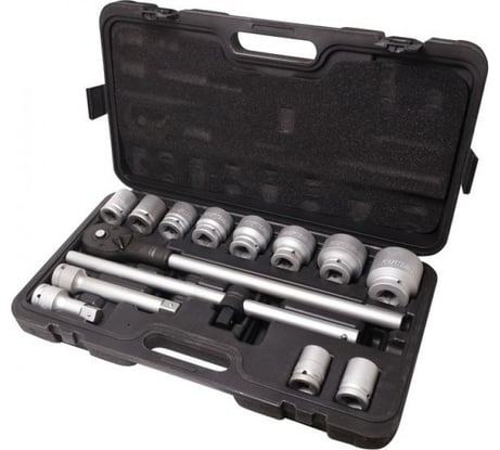 Набор доставлен в срок. Соответствует описанию. Весь комплект на месте, кейс целый, головки в смазке. На гайках/болтах сидят плотно, без люфтов. В работе набор проверен, нареканий нет