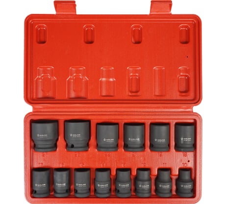 Набор ударных головок в пластиковом кейсе. Размерный ряд представлен основными средними размерами кроме 11мм и 14мм.