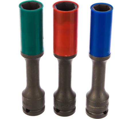 Отличный набор ударных головок для литых дисков. Изготовлены качественно, окрашены хорошо, внешние пластиковые защитные втулки имеют плотную посадку на головках. Головки размещены в пластиковом качественном кейсе. Внешний размер головок: головка на 17 мм - внешний диаметр 27 мм, диаметр без пластиковой защитной втулки 24,5 мм, головка на 19 мм - внешний диаметр 29 мм, диаметр без пластиковой защитной втулки 26,5 мм, головка на 21 мм - внешний диаметр 31 мм, диаметр без пластиковой защитной втулки 28,5 мм.