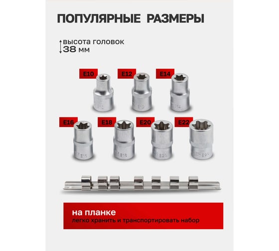 Набор головок внутренний TORX (14 пр; Е4-Е24; 1/2", 1/4") СЕРВИС КЛЮЧ 76605