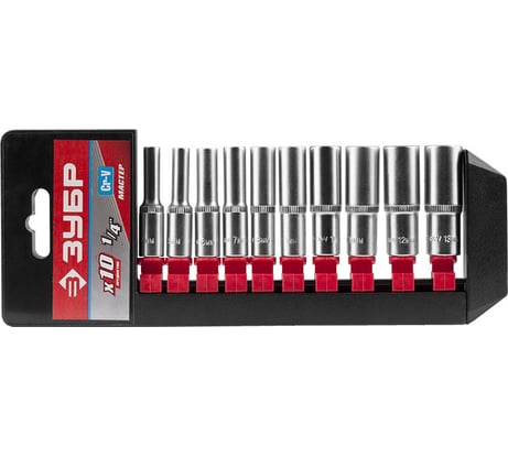 Отзыв о торцевых головках ЗУБР МАСТЕР 1/4" удлиненные на пластиковом рельсе, Cr-V, 4-13мм 27657-H10