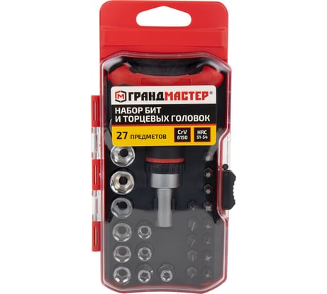 Отзыв Набор бит и торцевых головок с трещоткой ГРАНДМАСТЕР 1/4, 27 предметов, пластиковый бокс 671327