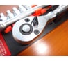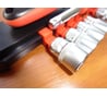 В комплекте все необходимые головки (10 штук). Есть удлинитель. Сам ключ в руке сидит нормально. Головки ездят в пластиковом корпусе на специальных держателях как по рельсам.